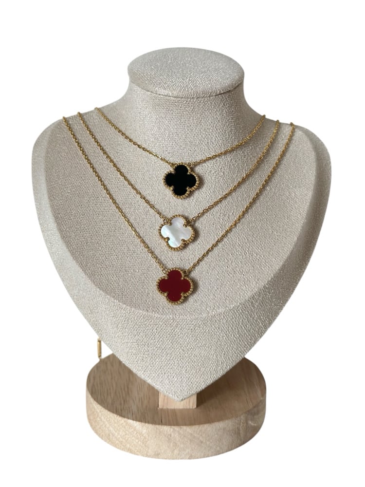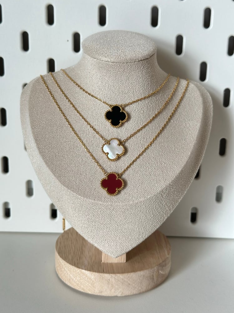 Style: Elegant Gold Clover Necklace with Logo Design Double sided color.