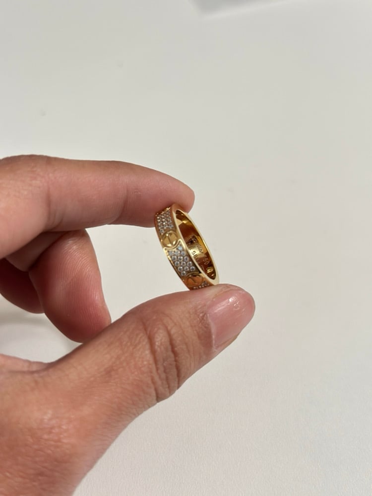 STYLE: Gold Luv Ring With 3 Row Stones.